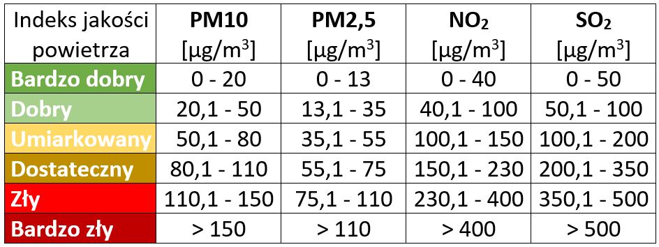 Główne parametry jakościowe powietrza: